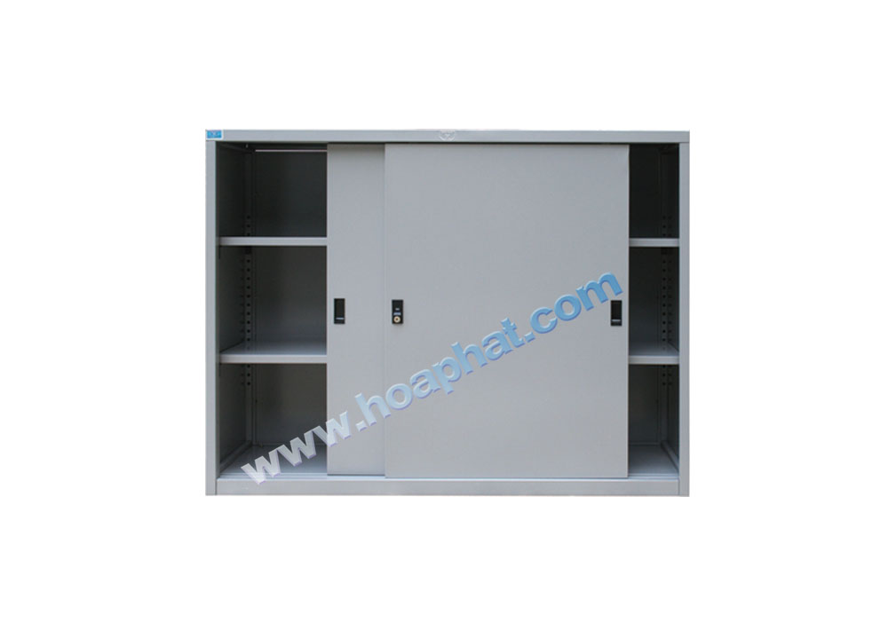 Tủ sắt sơn tĩnh điện 1 khoang, có 2 đợt di động, sử dụng 2 cánh thép lùa.
